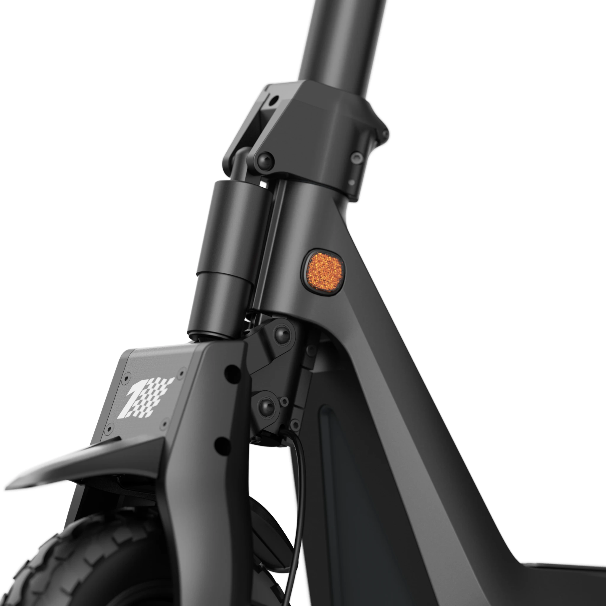 Braking is handled by NUTT hydraulic disc brakes with regenerative function for extra control and safety. The scooter also includes a touchscreen display with NFC lock and IP55 water resistance.