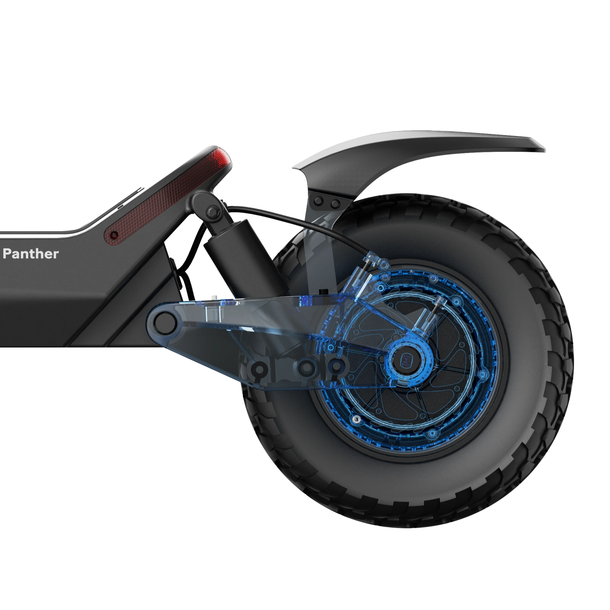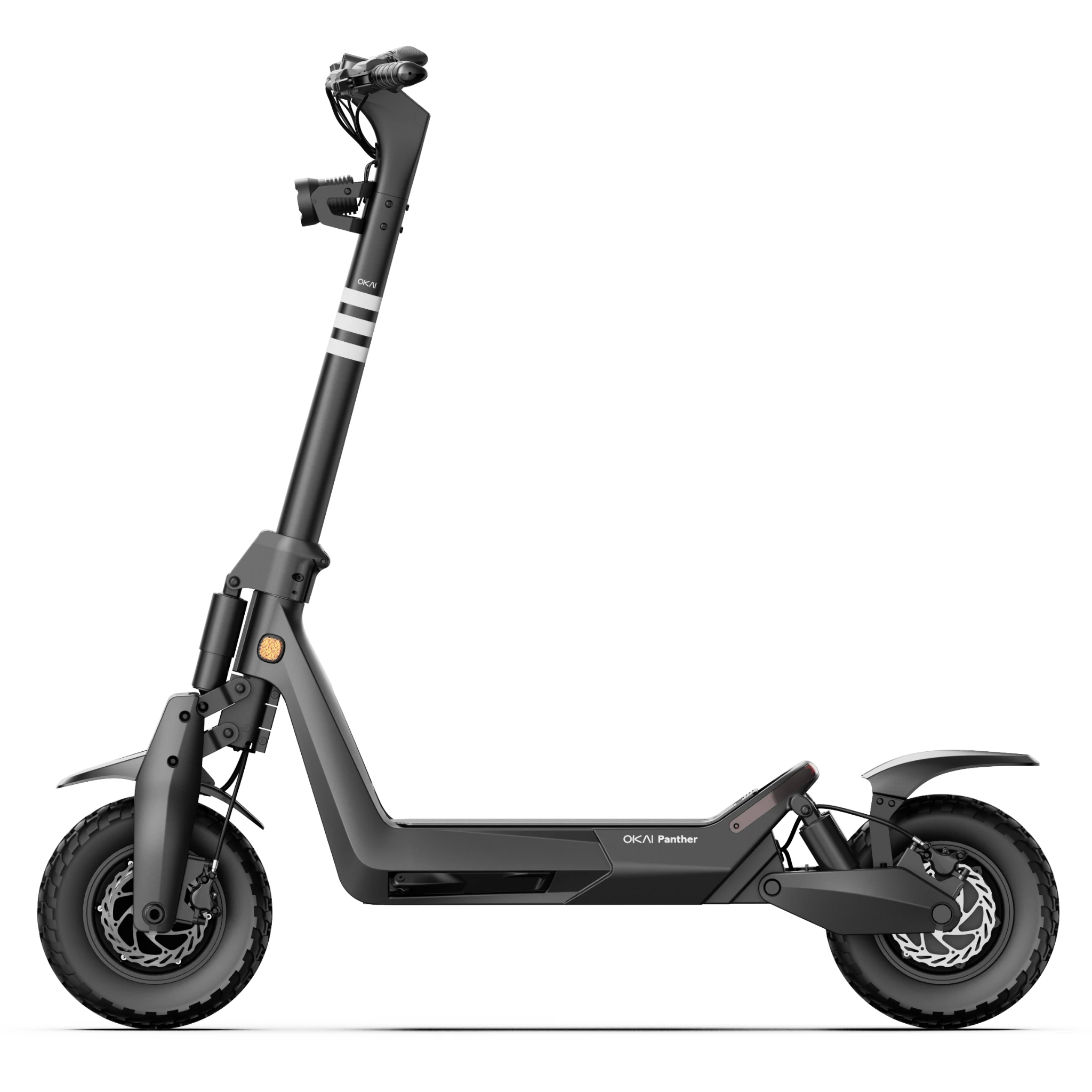 The OKAI Panther ES800 is a high-performance electric scooter with dual 750 W brushless motors (3000 W peak) and front-rear drive for powerful acceleration and hill climbing up to 35°.