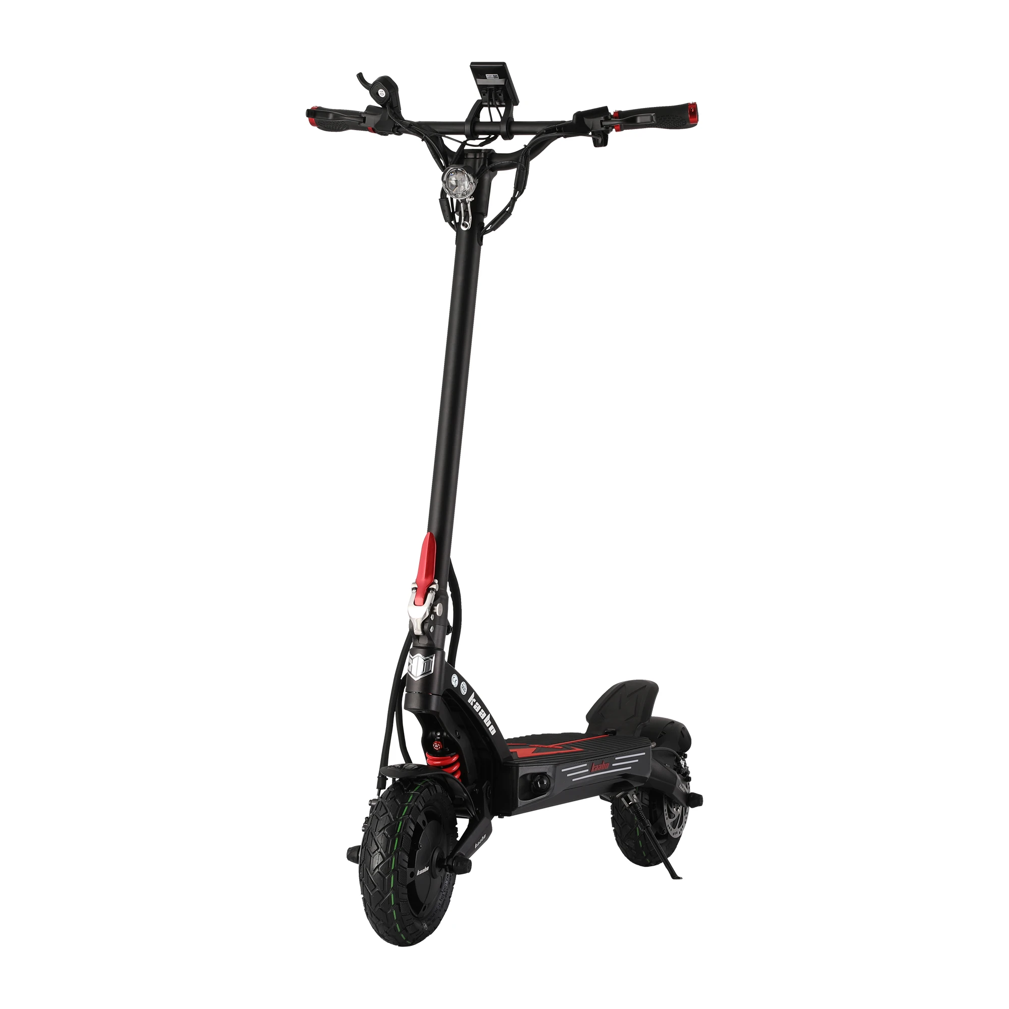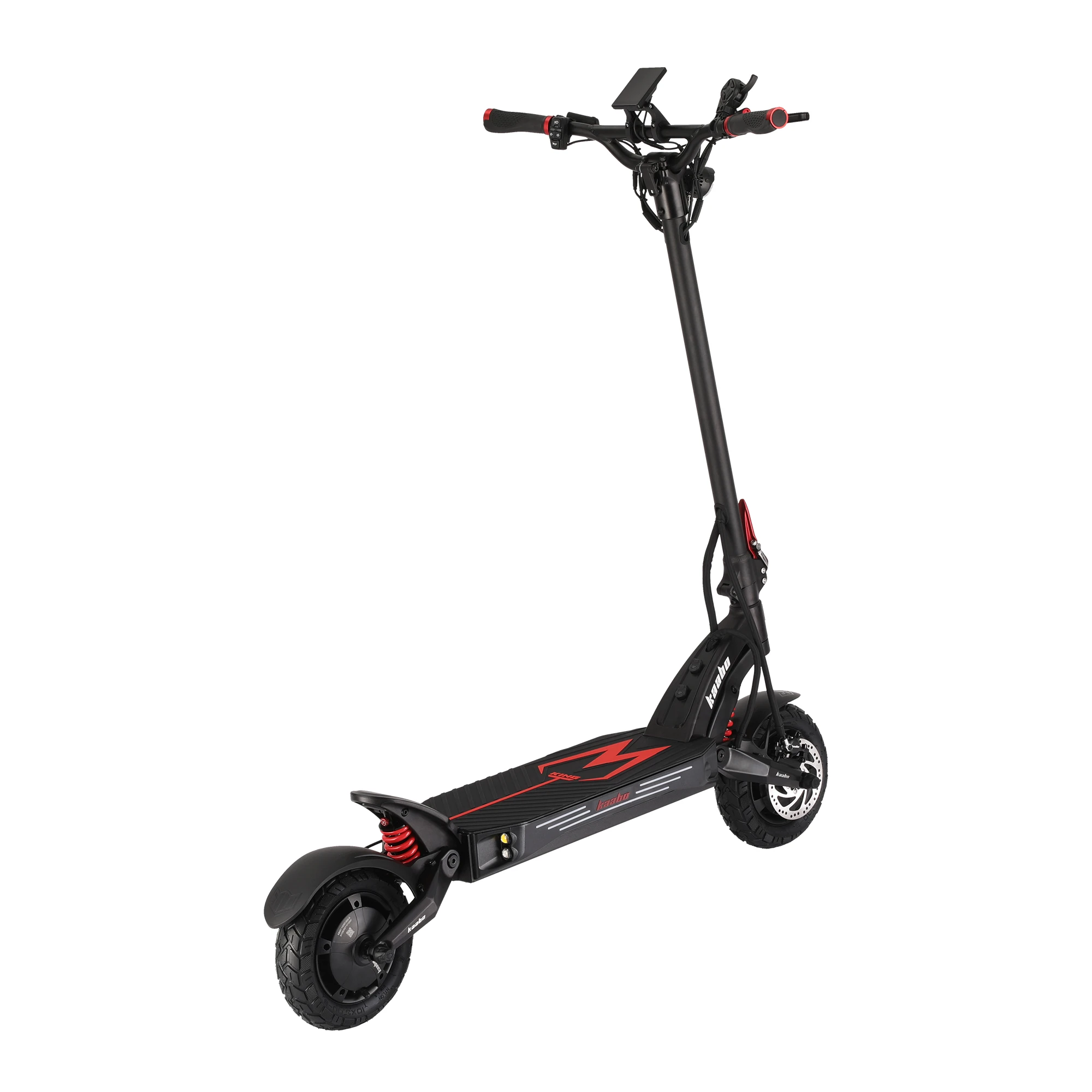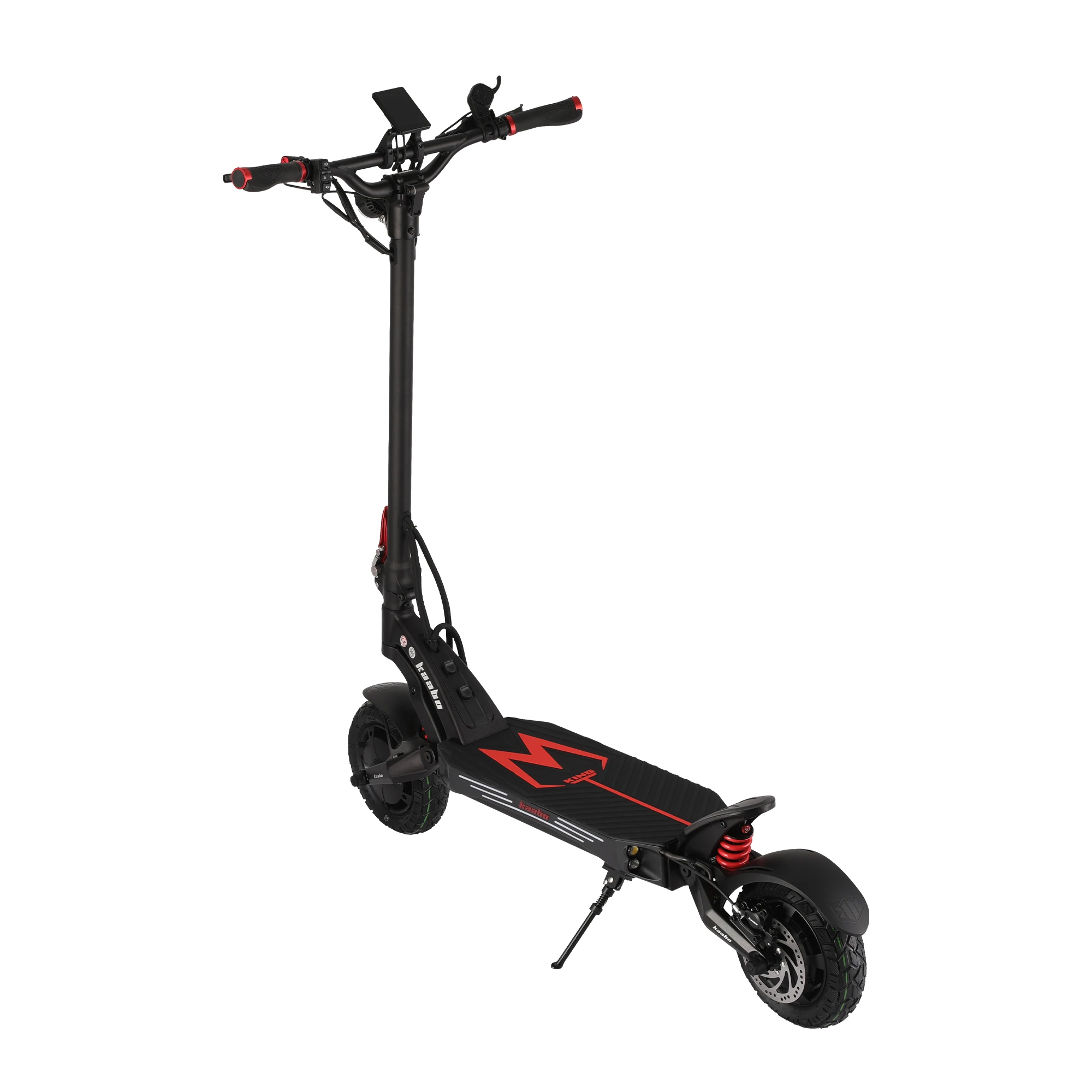 Električni skiro Kaabo Mantis King GT se postavlja kot izjemno prilagodljivo in varno prevozno sredstvo, ki izraža prestiž ter odličnost v vsakem aspektu. Na voljo je v treh elegantnih barvah - črnordeči, zlati in črni, ki poudarjata njegovo stilsko dovršenost in primernost za urbano okolje.